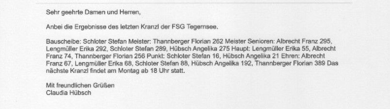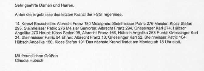 15. Kleinkaliberkranzl am Montag. den 26. August 2024