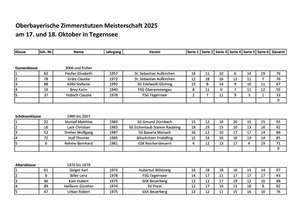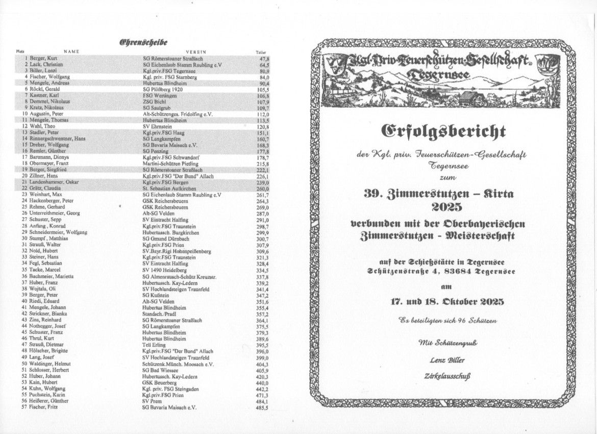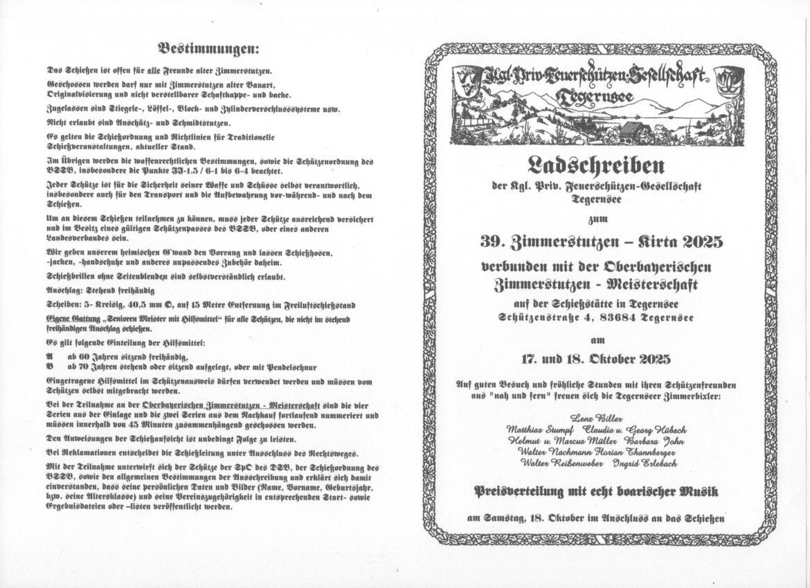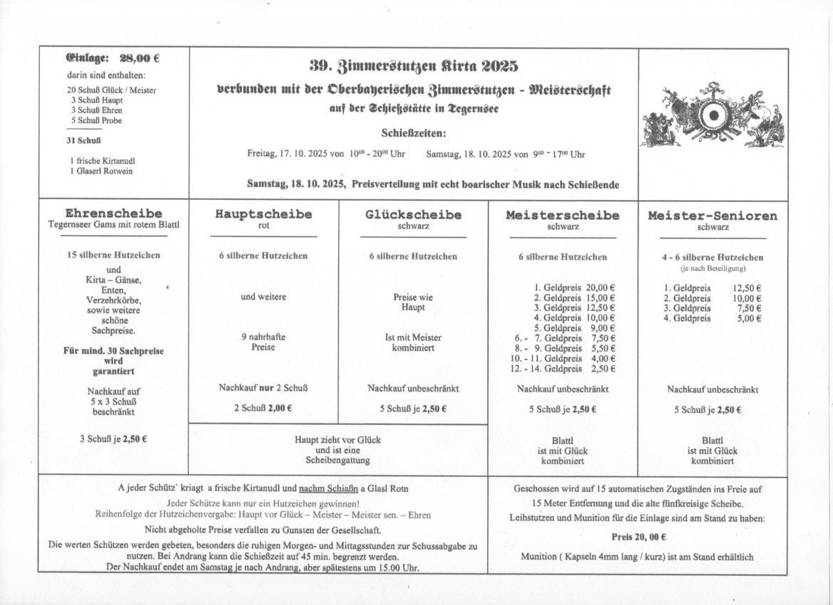 Zimmerstutzen-Schiessen am 18. und 19. Oktober2025